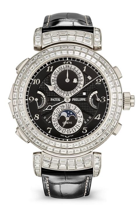 ▲百達翡麗最複雜手錶Grandmaster Chime 6300延伸出高級珠寶版本,錶殼外觀鑲上數以百計的鑽石,看起來華麗非凡。