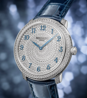 這款手錶屬於Calatrava系列,而這款最特別的是整隻手錶以螺旋形鑲滿了鑽石,所以整隻手錶的鑽石數量多達770顆,這可是需要非常細心且非常有耐性才可做到的。這也讓手錶看起來很華麗優雅,如果需要出席一些重要場合便很適合佩戴這款手錶。