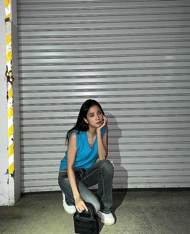 不少人都認為Lady Dior很優雅所以一定要配裙子,但Jisoo給我們示範了原來休閒的牛仔褲也一樣毫無違和感。Lady Dior就像呢個點睛之筆,令呢個本來隨意的造型完整了。